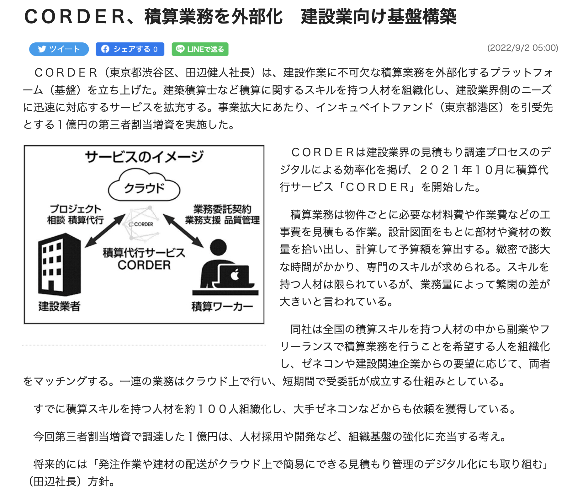 CORDER、積算業務を外部化 建設業向け基盤構築